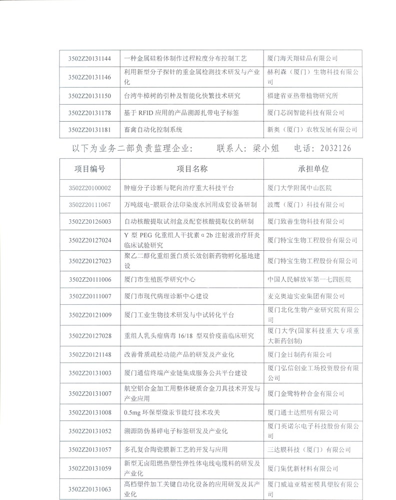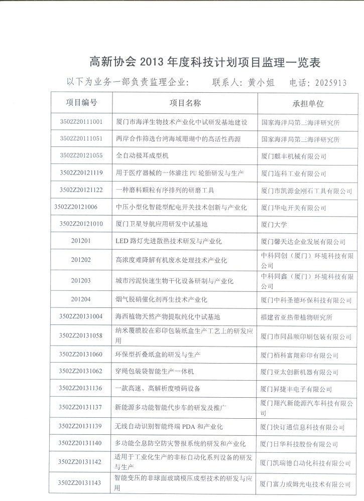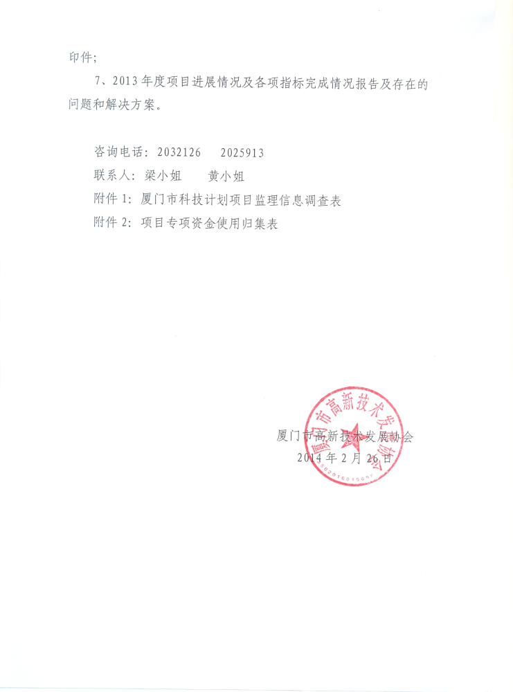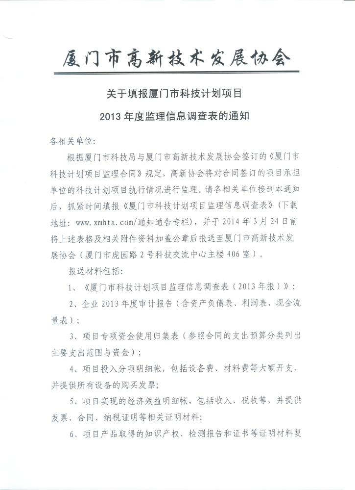 关于填报厦门市科技计划项目2013年度监理信息调查表的通知